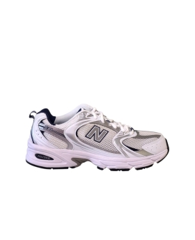 Tomaia in pelle bianca con impunture che definiscono gli inserti multistrato in tono.